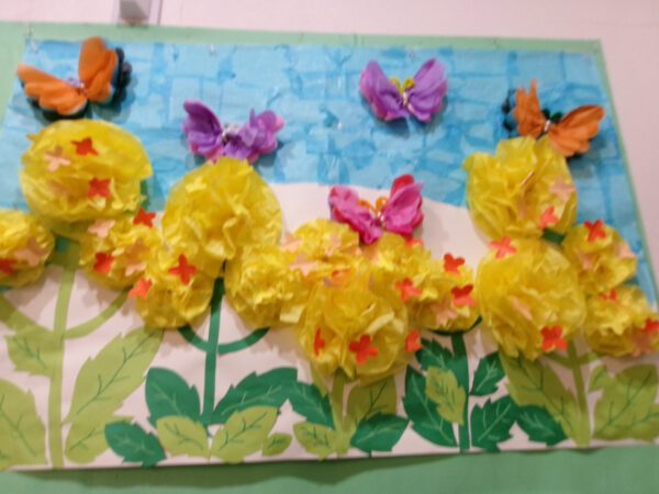 苗間では皆さんにお手伝いして頂いて(菜の花)の制作に取り組みました。