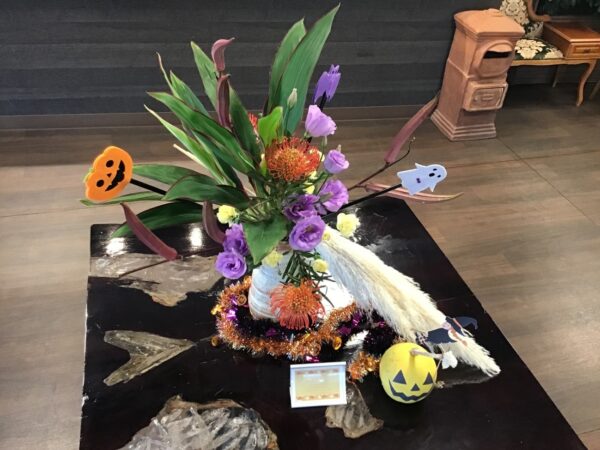 受付のお花が、ハロウィンの雰囲気に変わりました。
