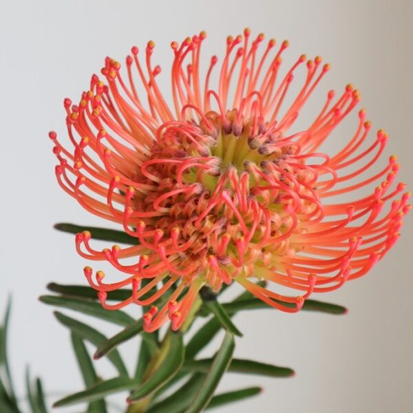 今回のアレジメントの主役は、まるで花火が開いたように咲くピンクッション。