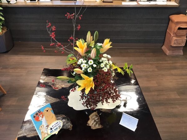 病院のロビーに、秋の彩りがいっぱいのお花が飾られました。