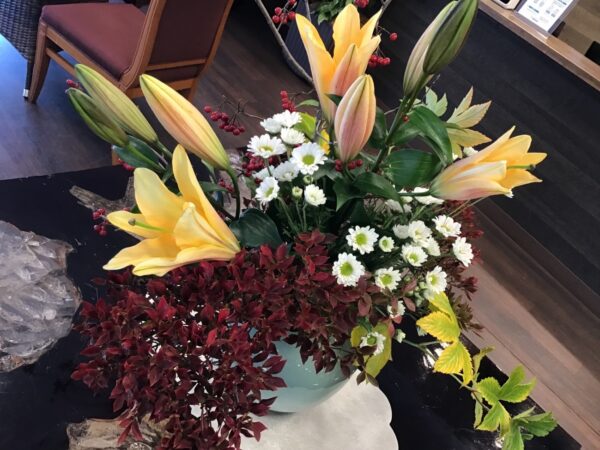 今週の本院ロビーに生けていただいた素敵なお花を紹介します。