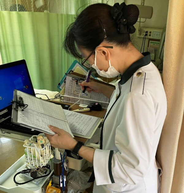 患者様とのコミュニケーションもいつも明るく、とても元気な声が病室に響いています。