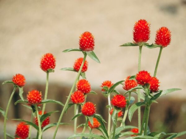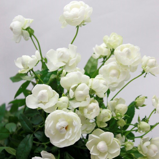 華やかなバラとスプレーバラが上品な存在感を放ち、ころんとしたセンニチコウが愛らしさを添えています。