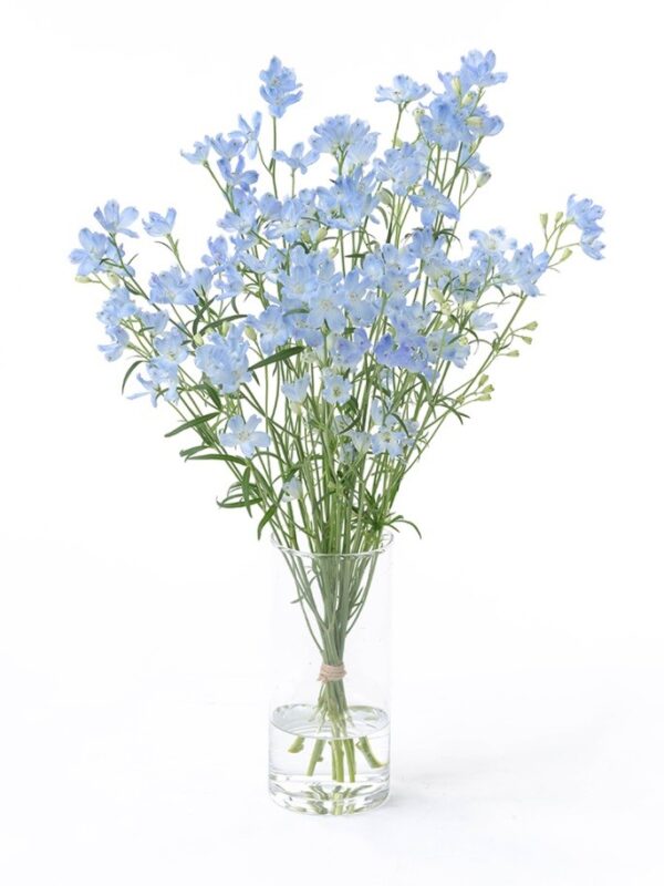 足元のブルーの花器と、レースのようなゴールドのマットがまた素敵で、