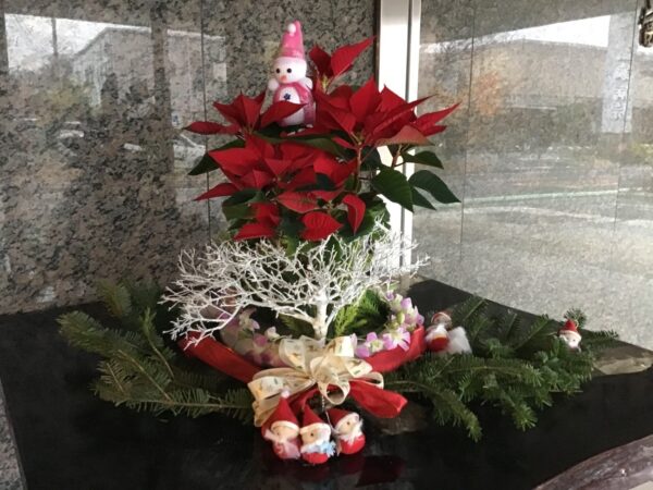 ロビーが、今年もかわいらしいクリスマスの装いになりました。