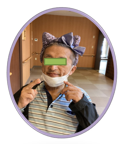この白い猫耳も似合っていますが、透析中はたまに紫猫耳にパワーアップしています。