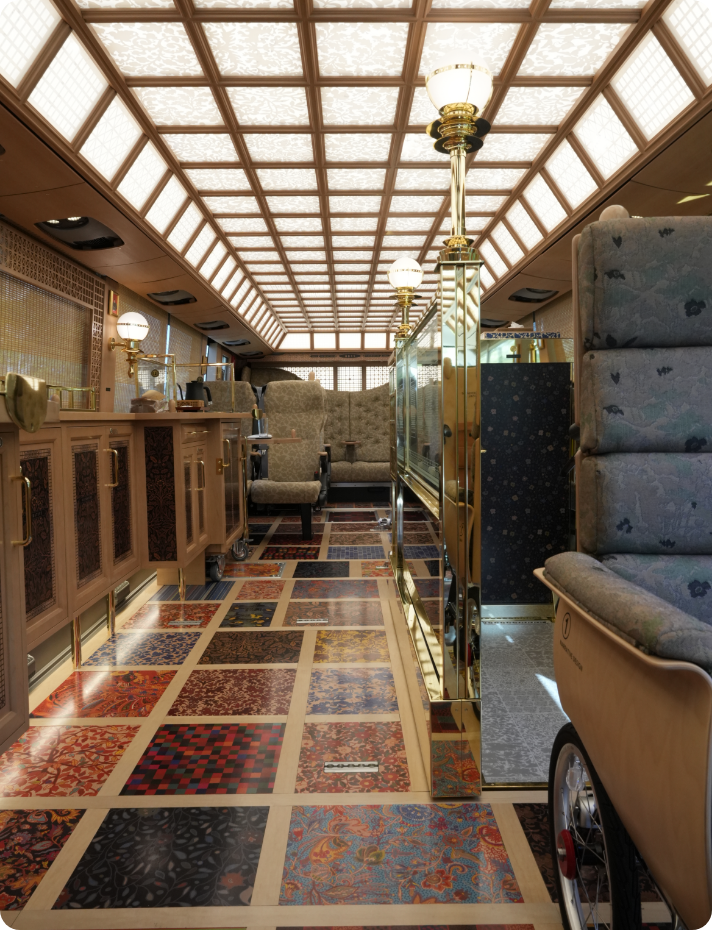 精緻な細工が凝らされた、上質な車内の空間は、さながら高級ホテルの よう。