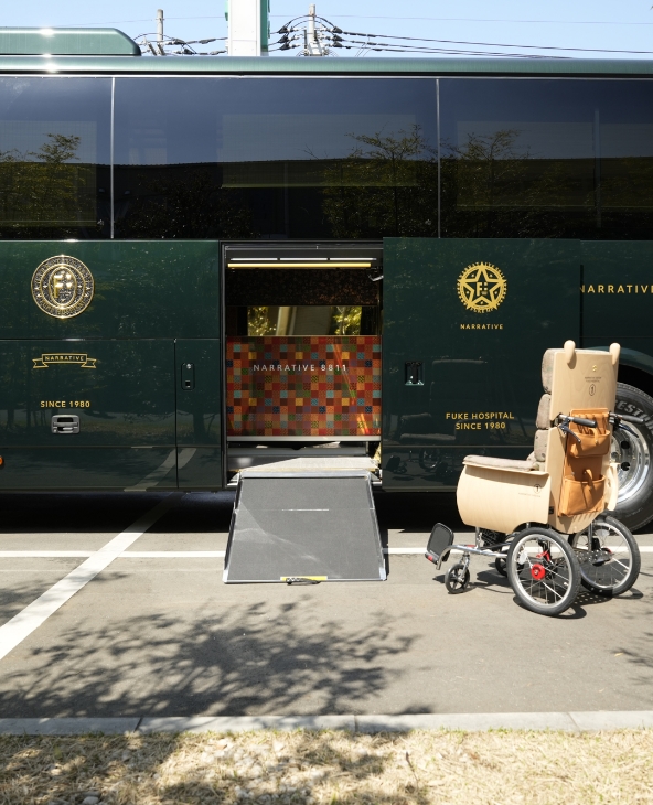 安全かつ快適に移動することができるこのナラティブバスは、クルーズ トレイン「ななつ星in九州」のデザインを監修した水戶岡鋭治氏が担当。