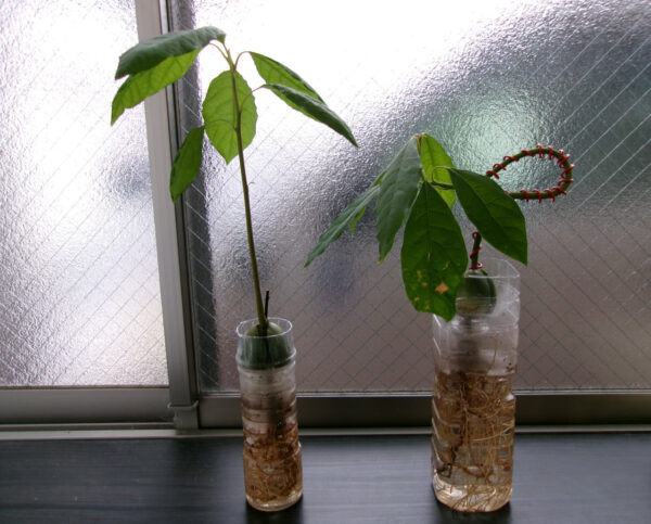 先月にはある程度大きくなったアボカドを水耕栽培から土の入った植木鉢に植え替えてみました。